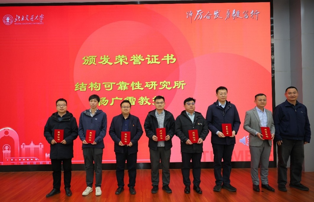 会前举行了2025年度“机电奖教金”颁奖仪式,本次奖教金由结构可靠性研究所和青岛威奥轨道股份有限公司进行资助,结构可靠性研究所的资助方代表杨广雪教授为获评“机电奖教金”的6位教师和1个集体颁发证书,梅嘉炜、杨超作为获奖教师代表进行了分享发言。